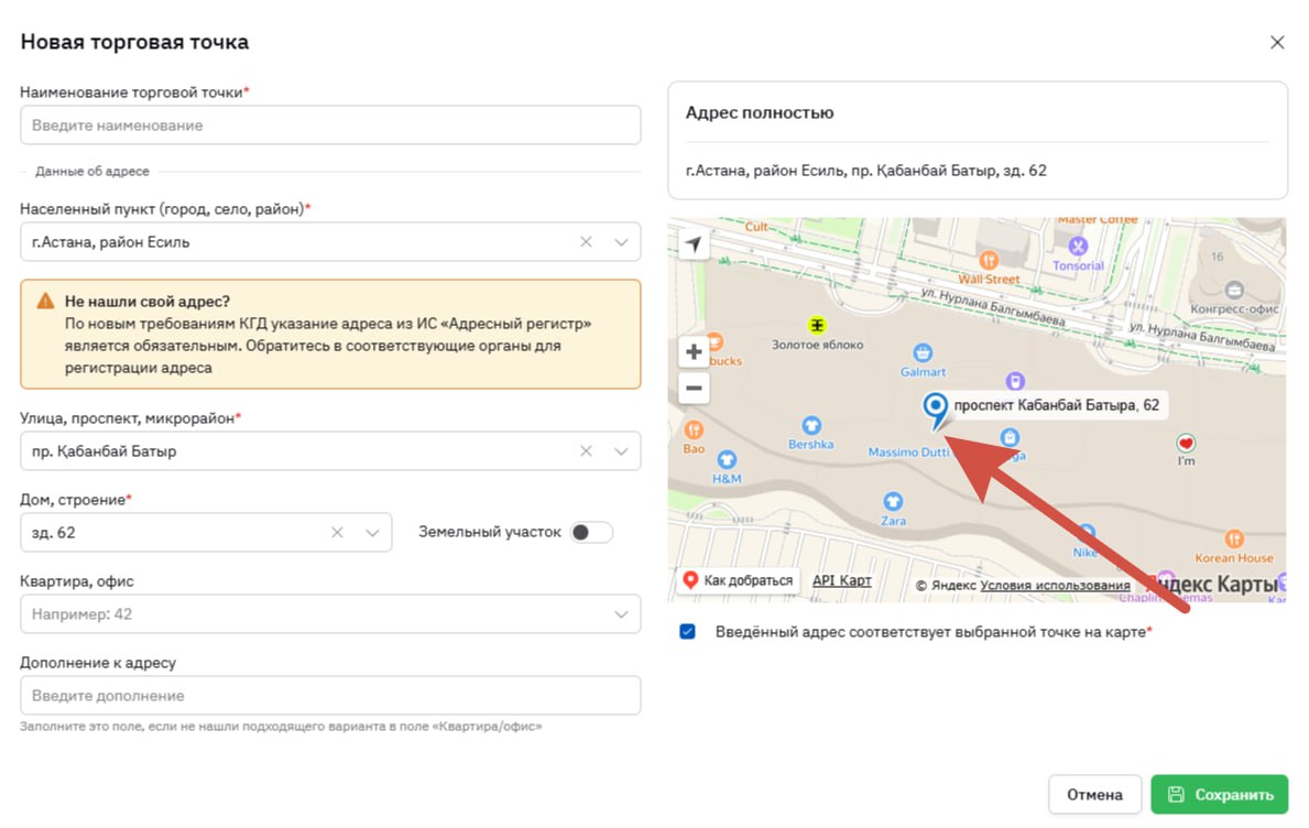 - координаты указываются один раз при регистрации торговой точки(Рис 3.)