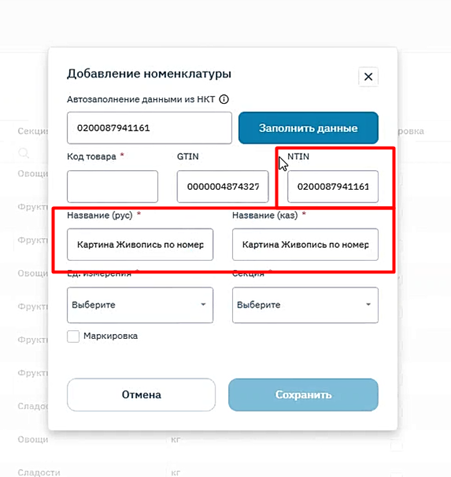 Рисунок 4 – Автоматическое заполнение данных товара из НКТ