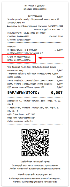 Рисунок 10-Чек с NTIN и GTIN