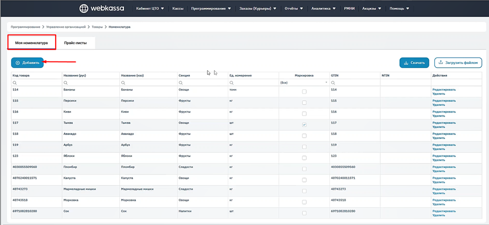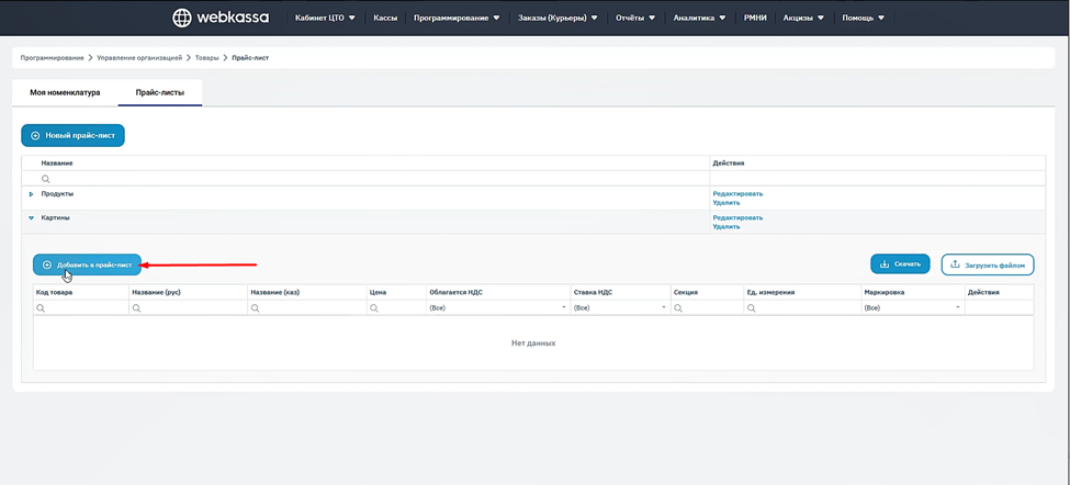 Прайс-листы, на основе которых формируется собственный каталог товаров, давно используется в Webkassa, и предприниматели уже работают с номенклатурой в привычном режиме.
