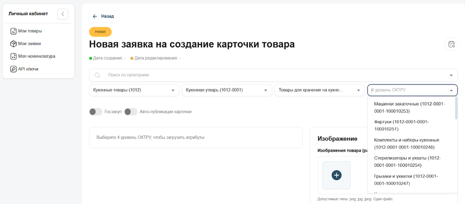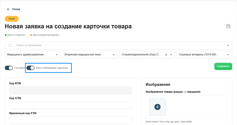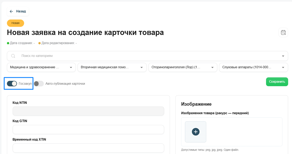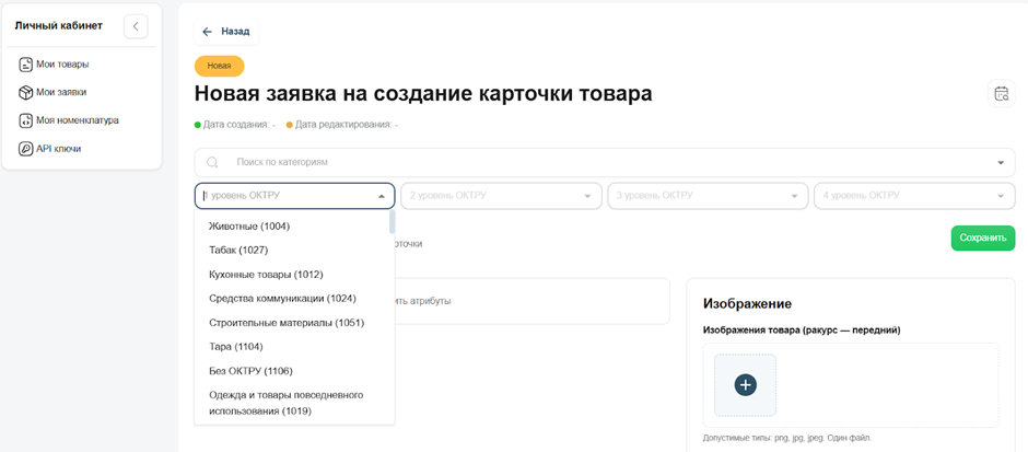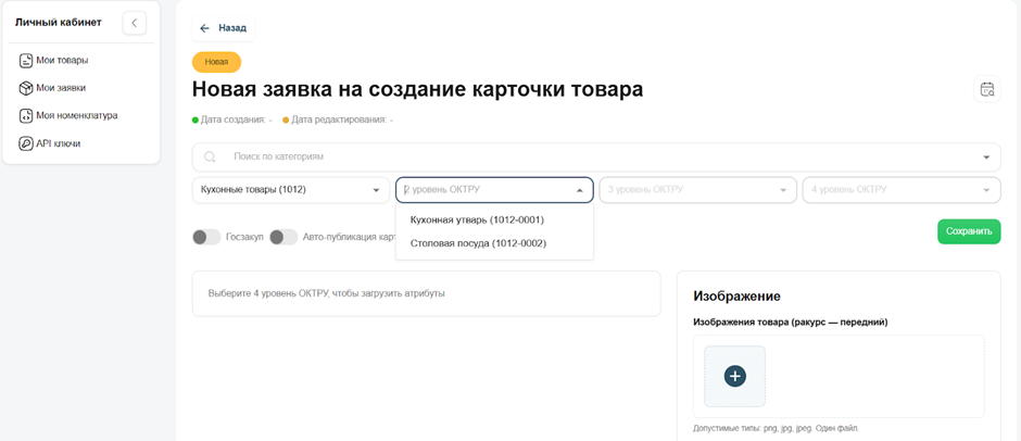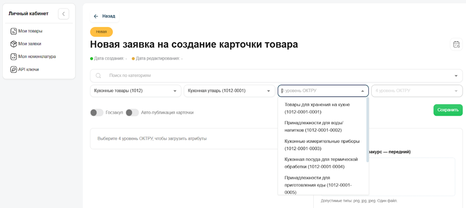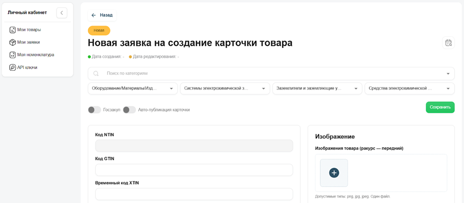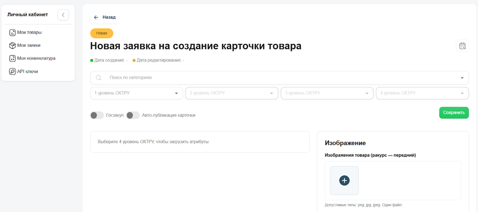 a. “Сохранить” - сохраняет черновик заявки, введенные сведения о товаре без отправки на модерацию, карточка товаров сохраняется в разделе «Мои заявки»