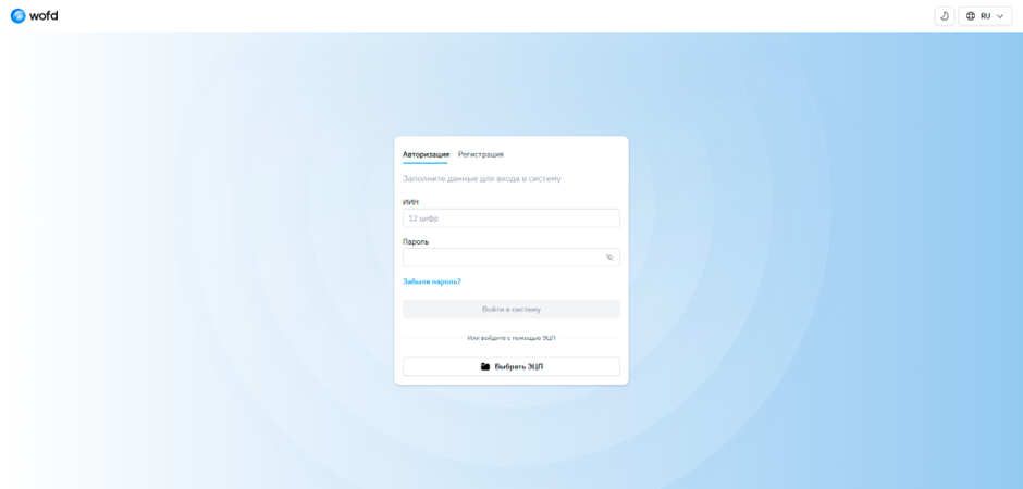 Шаг 1. Перейдите на сайт https://cabinet.wofd.kz