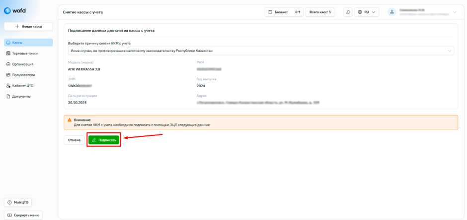 Шаг 7. После выбора причины, нажмите “Подписать” и подпишите с помощью ЭЦП