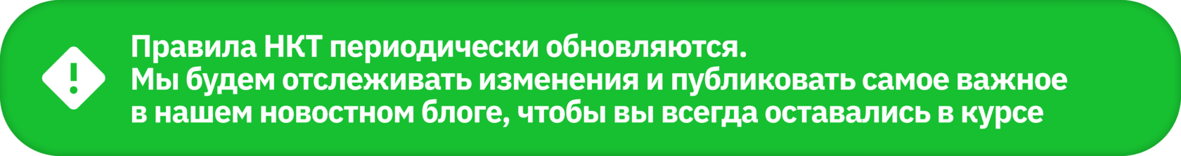 Правила НКТ периодически обновляются. Мы будем отслеживать изменения и публиковать самое важное в нашем новостном блоге, чтобы вы всегда оставались в курсе.